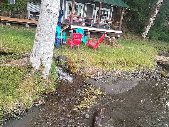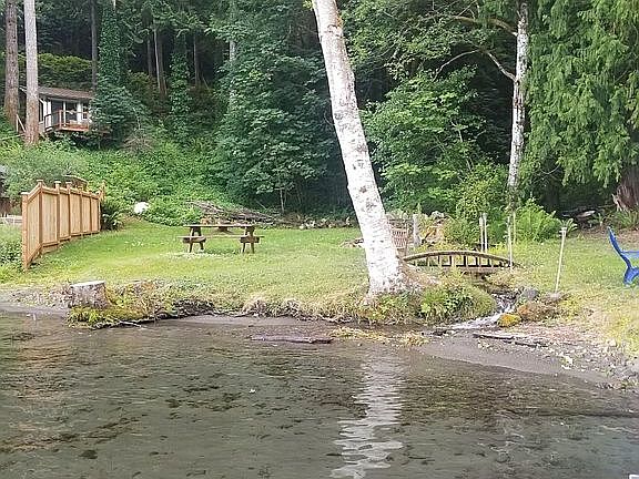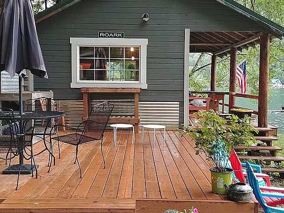 Beautiful little rustic cabin just shy of two full lots. One of the rare finds that gives you a shallow sandy area or a deep end for diving off the dock ,a beautiful creek runs through it. Good parking and a gentle slope trail with a huge grassy area lots of potential and possibilities..