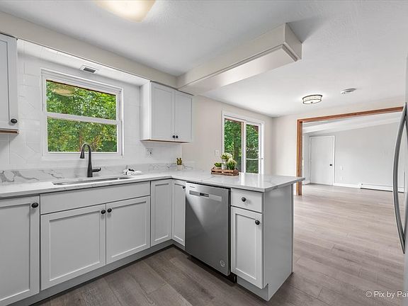 3 bed 1.5 bath 2 car garage, large corner lot with shed, close to river. This ranch offers new kitchen appliances, quartz counters, and flooring. The basement offers large finished rec or flex space.