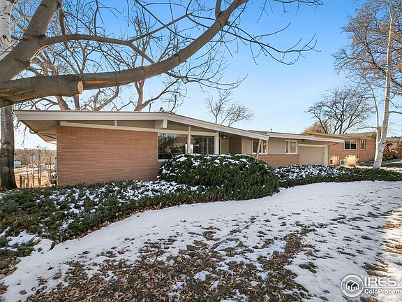 Fantastic Mid-Century Modern in Downtown Loveland! Nestled on a ridge overlooking a park-like yard with incredible mountain views and the Greeley/Loveland Canal flowing behind the property - the setting is picturesque! The home itself is an artistic expression with unique details including beamed ceilings, two brick encased wood fireplaces, hardwood flooring on the main level and so much more. Recently installed mini split A/C units keep the main level cool during the summer and the expansive screened in porch is the perfect outdoor living space where all of the Colorado seasons can be enjoyed comfortably. The walk out basement is complete with a recreation room, shop and cedar closet. Tucked away in a charming cul-de-sac yet proximate to all of the amenities Northern Colorado has to offer. Come discover this one of a kind property and be prepared to fall in love.