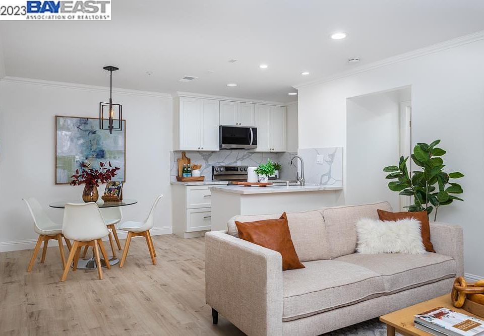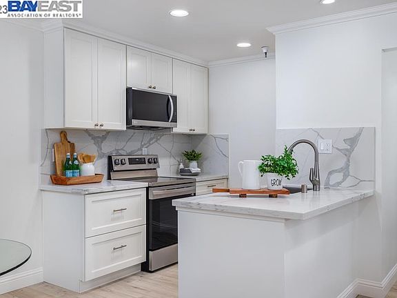 Don't miss out on the opportunity to own this exquisite first-floor condo that's FHA approved and ready for you to move in! The brand-new kitchen is equipped with stainless steel appliances, white cabinets, and a quartz countertop, providing a modern feel to the space. The condo has been recently painted in a chic European style and has luxury vinyl flooring throughout. The living room boasts a stunning stone fireplace with a flat-screen TV, perfect for relaxing. The two fully updated bathrooms have designer showers, ample storage space, and stone flooring. This unit comes with a detached 1-car garage and offers access to the complex's swimming pool and spa. The location is unbeatable, with easy access to freeways, shopping, restaurants, and downtown Walnut Creek. You can even walk to the Iron Horse Trail and BART.