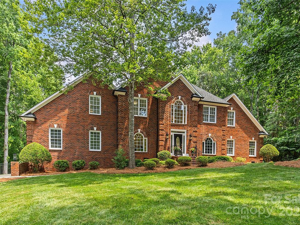 Stunning Full-Brick Home on a Private, Resort-Style Lot in Weddington Hills! The home has recently refinished hardwood floors, fresh interior paint and new light fixtures inside and out. Light-filled sunroom with tiled floors, offering serene views of a backyard oasis—complete with a sparkling gunite pool and multiple level patios. The kitchen features painted cabinetry with updated hardware, granite countertops, and picture window overlooking the lush backyard and raised terrace. The family room boasts a vaulted ceiling and cozy gas log fireplace. The spacious main-level primary suite with renovated en-suite bath featuring an oversized tiled shower with integrated soaking tub, dual vanities, and a generous walk-in closet. Upstairs, three additional bedrooms—one with an en-suite bath—plus a hall bath and a bonus room. Exceptional home sits on one of the best lots in the neighborhood, offering privacy and a stunning outdoor setting. Private neighborhood path to Weddington schools!