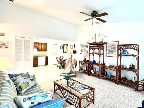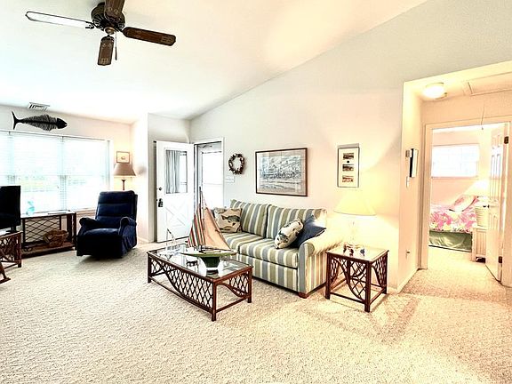 Grab your beach bag & head to the shore asap! This lovingly maintained Village Green quad is new to the market & ready for you to buy now so you can enjoy this spring/summer season! This street facing unit offers a spacious living room with vaulted ceiling for a nice open feel. The eat in kitchen has ample space for preparing meals & room for table seating. Two bedrooms, a full bath, & laundry closet complete this interior. Outside you can enjoy the covered front porch, there is also a storage closet & outdoor shower. Windows were replaced with new Anderson & the roof was also updated, not sure of the age of these. Take a look at the 360 Virtual Tour to get a good view of this home. This home is a clean slate ready for you to make your own & comes mostly furnished with some personal items/decor to be removed prior to closing.