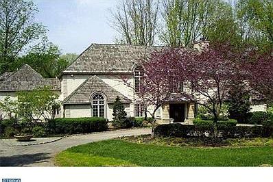 This impressive French Manor home sits on 1.74 landscaped acres in desirable Gladwyne. This custom home features 5 bedrooms 4 full and 2 partial baths. A two- story grand foyer with coffered ceilings leads into a beautifully appointed first floor living space. Gourmet kitchen with custom cabinetry granite countertops top-of ~~~the- line appliances a center island and breakfast area opens to an expansive family room with vaulted ceilings and stone floor to ceiling wood burning fireplace. Spacious Living Room Dining Room Library with custom built-ins powder room laundry room first guest/master suite with adjoining office/sitting room complete the first floor. Second floor boasts a large master bedroom suite with vaulted ceiling large dressing area with generous closets and white marble master bath overlooking the private rear wooded yard. Additional 2 bedrooms share a jack & jill bath an expansive 4th bedroom with and en-suite bath and rear stairs complete the second floor. Minutes from center of Gladwyne!!! Easy to show!!!!! (Owner is a licensed PA real estate agent)
