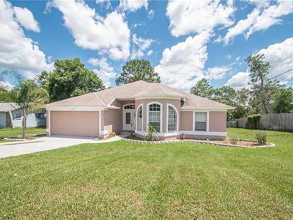 Located in the fastest selling zipcode in Hernando County, this home is sure to impress. The oversized backyard provides plenty of room for storage or just about any activity and is fully fenced. Enter the home to the beautiful pillar features into the family room which is laid in laminate wood flooring. The sliders lead out to the screened in patio overlooking the backyard. Ceramic tile covers the flooring in the kitchen & breakfast nook. Kitchen comes with all appliances and features wood cabinets. Freshly painted for ultimate curb appeal. Metered irrigation system to maintain it all. Large master bedroom suite. All carpets recently professionally cleaned. Minutes to shopping, restaurants and the Suncoast Parkway. This is the perfect place to call HOME. Come & see this one.