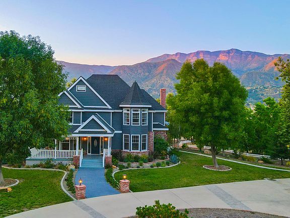 Contemporary Victorian home on 10+ acres with Topa Topa views. The gourmet kitchen includes granite countertops, breakfast bar, dining nook, and direct access to the wrap around deck. The open family room is the heart of the home, close to the kitchen and offers a fireplace with custom mantel surround. The formal living room is perfect for entertaining; includes a wet bar, wood burning fireplace, and large bay window to take in the views. The large master suite has an ensuite bath, clawfoot tub and walk-in closet. A third story finished attic which is currently used as a 5th bedroom could make a great retreat area or office. A newer detached 3-car garage with a finished second story could easily be converted into a guest house. Enjoy Topa Topa sunsets from the fully fenced pool and spa. Open pasture for cattle, large goat or dog pen & vegetable garden. This is country living at its best!