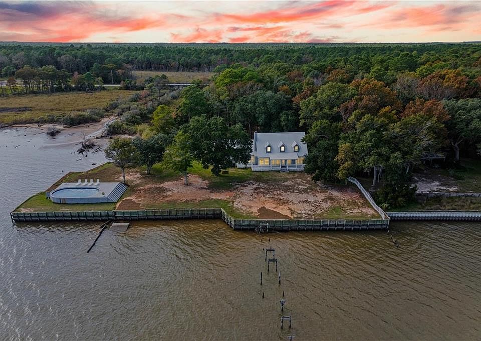 This is a Coming Soon Listing. Welcome home to this stunning 4-bed/3-bath Southern Coastal Farmhouse, perfectly situated on approx. 2 acres with 267 feet of waterfront along beautiful Mobile Bay. The seawall was fully restored just a few years ago, offering peace of mind and lasting stability for years to come.Designed for comfort and timeless style, this home welcomes you with a chef's dream kitchen featuring a built-in 8-burner Wolf range with pot filler, two dishwashers, ice maker, microwave, and abundant storage, including both a large pantry and a hidden butler's pantry/workshop.The main floor boasts a new primary en-suite just off the dining room that has private entry to the deck, where both spaces offer unobstructed views of Mobile Bay. The open-concept living and dining areas are bright and airy, with large picture windows and skylights ideal for astonishing views. A second en-suite on the main level adds versatility and comfort for family or guests.Upstairs, you'll find 2 spacious bedrooms connected by a Jack-n-Jill bath, a separate living/recreation room, and a bonus room/office, perfect for working from home or creating a cozy getaway.Step outside to enjoy quiet mornings and breathtaking sunsets or sunrises from the covered front porch, expansive deck, or the detached, decked swimming pool (4 years old, with a new liner installed this summer), all offering panoramic bay views surrounded by mature trees and natural beauty.With its 5yr-old metal roof, classic dormers, and inviting porch, this property blends modern farmhouse elegance with Southern coastal charm. creating a truly exceptional waterfront retreat.Buyer/buyer's agent to verify all information deemed important during the due diligence period. Buyer to verify all information during due diligence.
