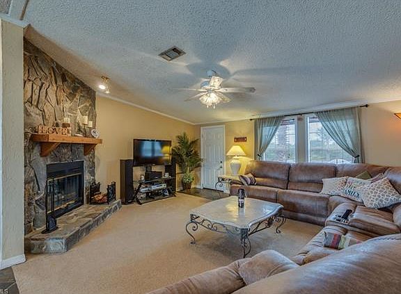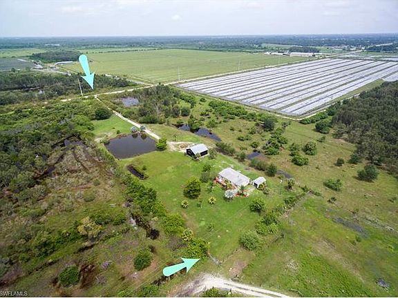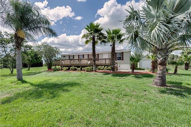 Beautiful horse friendly COUNTRY setting! This 3 bedroom, 2 bath home sits on 5 acres that is completely fenced and has two entry points-South side and the East side of the acreage. The private oasis is accented with a fire pit and a stocked pond that is almost 3/4 an acre in size, plus there is plenty of room to add a pool if desired. Inside this cozy home you will find a Great Room and Split Bedroom design with a gorgeous stone wood burning fireplace. The Kitchen has custom slate tile flooring and features a Breakfast Bar, Formal Dining area, and an Eat-In Kitchen area. There's lots of room to store all your toys or have a shop in the two barns located on the property. The detached garage/barn is 32 x 36 x 12 and fits 3 cars+toys, also located near the home is a 12 x 22 shed/garage, both have electric. A new A/c was just installed with a 10 year warranty. A spacious wood deck is on the front of the home, perfect to watch the FL wildlife or the amazing sunsets. Located close to SR 82 with easy access to Daniels Pkwy & I-75 while enjoying all the comforts of the country!