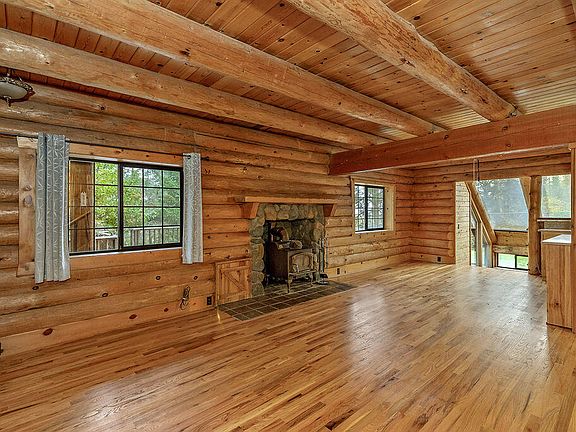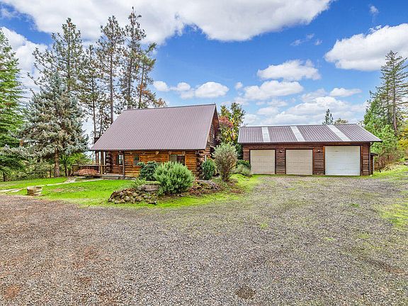 Private, gated almost level 104 acres of forest and pasture with Medford city and Table Rocks views and a beautiful custom 1857 sqft 3 BR 2 BA log home built with logs from the property. The home was built with a combination passive solar/ greenhouse design for your mini-botanical garden! Adjacent to the home there is a 3 car detached garage/workshop with covered RV parking and a darling. detached 1BR/1BA log style 420 sq. ft. ADU for your guests or In-Laws. Entertain your family and guests with a covered outdoor kitchen/barbeque area adjacent to your beautiful pool and spa area. This property features 240MBF of pine and fir intermingled with madrone and oak along with horse/ATV trails throughout. There are also fenced pastures, a barn and corrals for your horses.