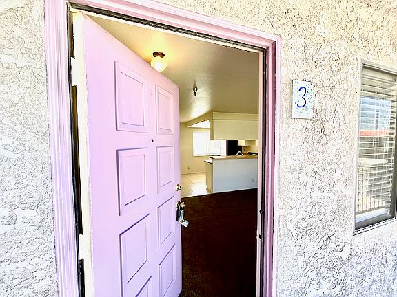 Due upon approval at lease signing: First Full Month's Rent + Security Deposit This adorable apartment is located on the second floor, *stairs only*. A peaceful, purple door beckons you to walk inside. With an open concept living room and kitchen, this pad makes you and your guests feel right at home. The kitchen includes a gas stove, dishwasher, plus a breakfast bar. Bring your own fridge and bar stools. Through the hallway you'll notice LOTS of closet/cabinet space, two sunny bedrooms with blinds and a full bathroom. There is a laundry room on site, one carport parking space, water and trash are included and your furry little companion will be considered with an additional security deposit. One Year Lease; Pet considered w/additional security deposit; water & trash included Due upon approval at lease signing: First Full Month's Rent + Security Deposit