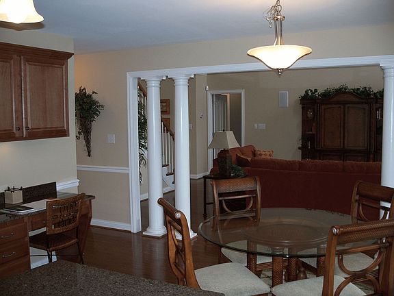 Be the first to live in this fantastic former model home! Gorgeous first floor master suite with his & hers walk-in closets and vanities, jetted tub and separate shower. Gorgeous interior features include gleaming hardwood through most of 1st floor, gourmet kitchen with granite counter tops, deluxe cabinetry, large island--ALL kitchen appliances included! Three spacious bedrooms and full bath upstairs PLUS a bonus room that's perfect for an office or playroom. Covered back deck with ceiling fan overlooks the huge private backyard. Mud room is a plus! Designer window treatments will remain. Audio, security, and irrigation systems included. Swim Club membership available.