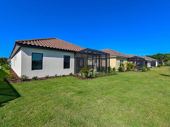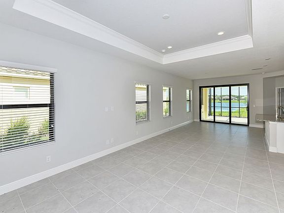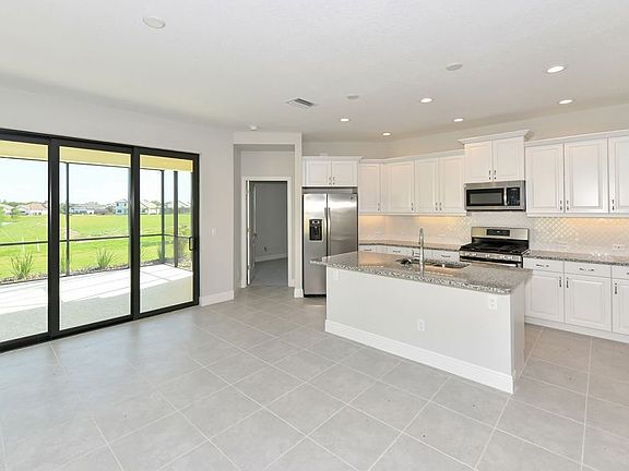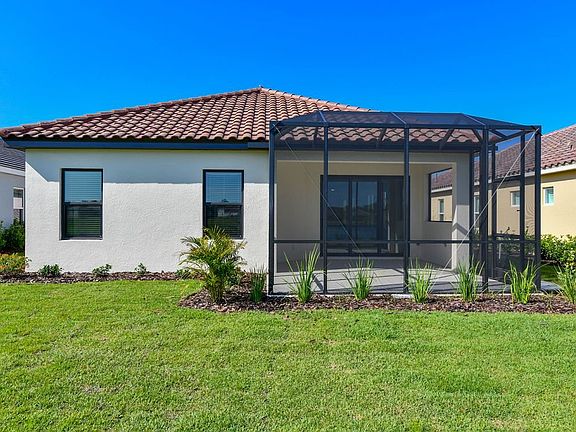 This all-new home is available for quick move-in!. Don't miss your chance to move right into a brand new home in Lakewood Ranch. The open living area gives a light and airy feel, with an expansive great room with coffered ceiling and recessed lights. Many designer upgrades are included, such as ceramic tile flooring throughout the living room, dining area and gourmet kitchen with island. Enjoy all new stainless steel appliances, cloud white cabinetry, granite countertops and decorative backsplash as well as recessed lighting. Sliding glass doors open to the covered lanai that is spacious and enjoyable. In the master suite, the large bedroom offers a walk-in closet, walk-in shower, private water closet and dual vanity sinks. A second bath, also with extended counterspace, is located between the two remaining bedrooms. Visit Indigo by Neal Communities in Lakewood Ranch today. Call to find out more about this home and schedule an appointment before it's sold!