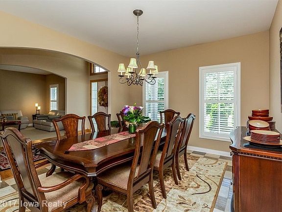 Hard to find 1 1/2 story, with first floor master bedroom, in Timberline, an upscale neighborhood. This well-maintained home has 3,477 SF on the main two floors plus 1,956 more SF in the walk-out LL, for total of 5,432 SF. There are 5 BRS, 4.5 baths and a 3-car garage. The main floor has formal living room and formal dining room, family room with fireplace, private office in the back of the house; kitchen with SS appliances including double oven, granite counters, hardwood floors; master bedroom with walk-in closet and master bath with whirlpool tub, 2 sinks and separate shower. The second floor has 3 BRs and 2 baths. The finished walk-out basement has a 5th BR, 3/4 bath, second family room with walk behind wet bar/kitchenette. Features include 2 zone heating & cooling, lawn irrigation system, security system. The lot is a 1/2 acre with large trees. Near DSM Christian School & Timberline Elementary Urbandale School. Very clean and ready to move in.
