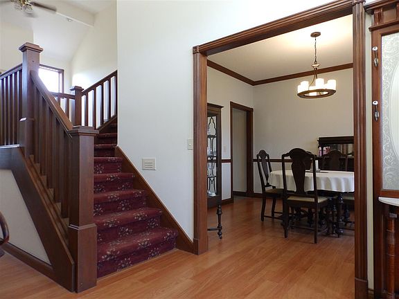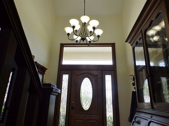 *OPEN HOUSE SUNDAY JUNE 4, 2017 1-3PM* A mind for detail and eye for design established this one owner home. As you enter through the beautiful leaded glass front door enjoy the open, practical floor plan and two story foyer. The flow into DR accented by chair rail and crown molding and GR with 18 foot high ceilings featuring a direct vent gas fireplace with quartz glass front, remote with thermostat, two level flame and three speed blower that is framed by windows. The unobstructed opening into the dining area/kitchen welcomes you to a highly functional and appealing kitchen. Staggered custom cabinets, two with glass fronts, high quality tile look laminate flooring, pantry, five burner stainless gas stove with convection oven, Large refrigerator with three doors and water dispenser. The eating area with offers access to the 13x12 cathedral porch with heavy grade screen, roller shades, fan and direct adjoining of the 16x14 composite deck with steps, handicap ramp, sidewalk to back side exterior entry door. The attractive landscaping front and back, stamped and poured concrete areas, has created environment and view that includes edged beds, pine trees, berry bushes and retainer wall with large stones. Master bath has separate shower and jetted tub with window that opens. An attractive chunky wood banister frames loft equipped with closet. A second master bedroom with double cell blinds is offered upstairs that includes an bath with Corian counter and sink, 11x7 walk in closest, stool and also has a Jack and Jill bath that accommodates BR#3. Another huge closet with 2 sets of built ins. In the Lower Level FR plumbed for wet bar, structured wiring available for Theater Room 23x19, crawl space, BR with daylight window, full bath. Utility room has exterior door, counters and cabinets. Oversized garage and door 8x18 also pegboard, pull down stairs floored attic and utility sink. 74 gal water heater new 2013. Closet Concepts organizers in closets including pantry. RO water system. Double sump pump. All appliances stay and less than five years old. Battery back up sump pump.