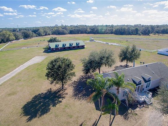 This elegant equestrian estate offers a unique opportunity for a completely turn-key facility located on 55 +/- acres just 3 miles from Fish Hawk and 15 miles from Tampa! The property consists of 2 barns: a 10-stall and 6-stall, 9 turn-out paddocks fenced with PVC, and a 3 bedroom/2 bath 2,003 sq ft home.