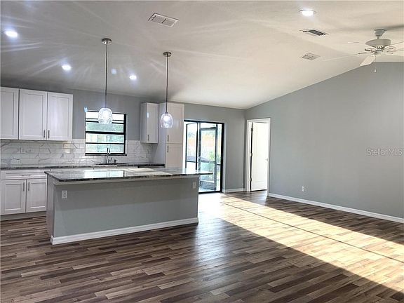 - Interior Features: Ceiling Fans(s), Open Floorplan, Split Bedroom, Walk-In Closet(s), Solid Wood Cabinets, Kitchen/Family Room Combo, Solid Surface Counters