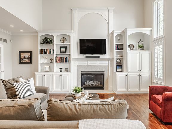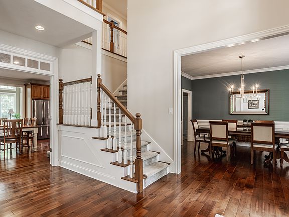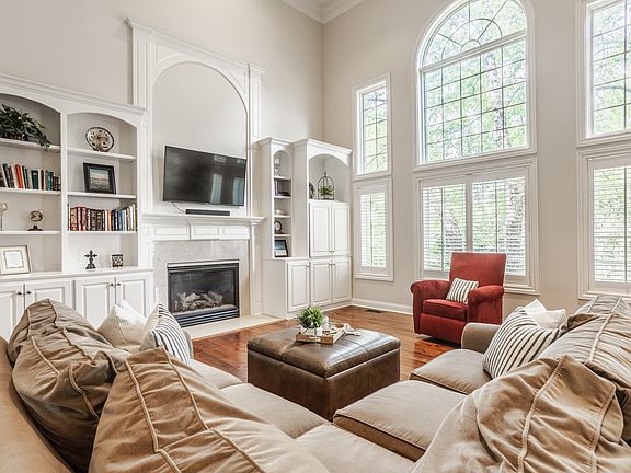 Meticulously cared for custom home w/ multiple flexible living spaces make this 5BR/5BA Brooks Landing at Prairie View home a rare find! A beautiful entry ushers you into a grand, well-appointed foyer & French doors invite you into a stunning 2-story great room with floor to ceiling windows, built in bookshelves, & gas fireplace. The open floor plan connects family & guests to the kitchen, breakfast room & sunroom making it perfect for large gatherings! Kitchen updated in 2024 with new Quartz countertops and pendant lighting. Tucked away on the first floor is a bedroom/office adjacent to a full bath. New Hardwood floors (2016) cover the main level and new carpeting (2021) upstairs & in basement. The upper level includes a spacious owner's suite with gas log fireplace, tray ceiling, & large closet/dressing room. Each additional bedroom is attached to a bath! Two generously sized bedrooms connected with a J & J Bath and an additional bedroom with ensuite. NEW roof, furnace, & water heater in 2020. Finished daylight basement is ideal for entertaining, including a wet bar, media area, & large flex space for games/gym. Don't miss the bonus room w/full bath & the extra utility room storage! Extra overhead storage available in the 3-car garage! A large deck (painted 2022), outdoor lighting (NEW 2022), irrigation system, and beautifully manicured yard, mature trees & tree lined lot complete this ideal retreat.