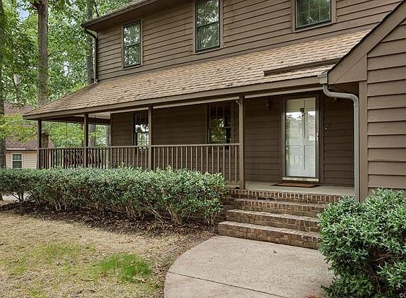 Located on a quiet cul-de-sac that backs up to an elementary school playground this is the perfect house for a family. The home features an open floor plan with vaulted ceilings, a large eat in kitchen with bar seating, site finished hardwood flooring in the study and dining room and a rear deck perfect for grilling and entertaining, the backyard is fenced in. The upstairs features 5 bedrooms, one of which would be perfect for a spacious game room. Their is a large master suite with a walk in closet. The house also has a very large walk up attic for storage, and a two car garage. The wrap around front porch is the perfect place to enjoy relaxing evenings. The home was recently repainted and features all new carpet throughout.