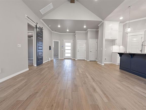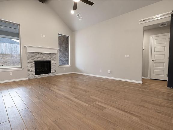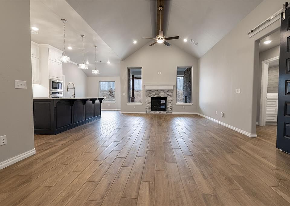 This Sage floor plan features 2,105 Sq Ft of total living space, which includes 1,850 Sq Ft of indoor living space & 255 Sq Ft of outdoor living space. This outstanding home offers 4 bedrooms, 2 full baths, 2 covered patios, a utility room, & a 3-car garage with a storm shelter installed. Because safety isn’t an option, Homes by Taber includes a roomy storm shelter in every home. The beautiful living room presents a beautiful cathedral ceiling, large windows, wood-look tile, a center stacked stone surround gas fireplace, a ceiling fan, Cat6 wiring, & a barndoor. The kitchen supports stainless steel appliances, 3 CM countertops, stunning pendant lighting, a corner pantry, custom-built cabinets to the ceiling, more wood-look tile, & a center island. The primary suite welcomes a sloped ceiling detail, windows, a ceiling fan, & our cozy carpet finish. Prime bath has a dual sink vanity, a Jetta Whirlpool tub, a walk-in shower, a private toilet, & a HUGE walk-in closet. Outdoor living welcomes a wood-burning fireplace, a gas line, & a TV hookup for your flatscreen. Other amenities include our healthy home technology, a tankless water heater, a fresh air ventilation system, R-44 insulation, & so much more!
