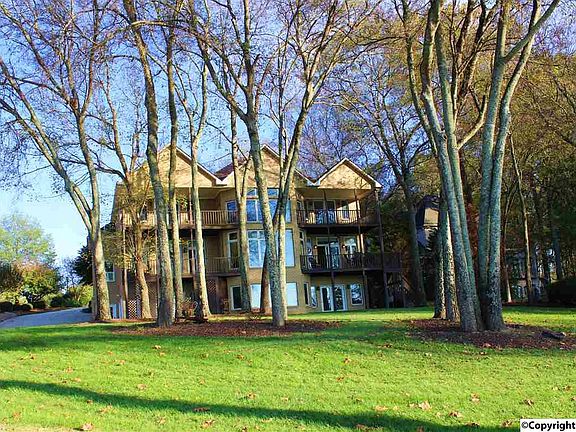Gorgeous water front executive home in Brigadoon. Stunning views await when you step through the 8' tall custom doors. Sweeping views of Wheeler Lake are visible from the 2-story Greatroom window bay, as well as the private balconies opening off all major rooms. Beautiful kitchen with double islands, high end stainless appliances, and granite counters. Designer lighting fixtures. Fresh, contemporary decor. 5 bd/4 ba. Most bedrooms afford views of the spectacular sunset through large window walls. Concrete pier leads to boat house with lifts for two boats and two jet skis plus lounge area. Incredible property, with incredible home to match.
