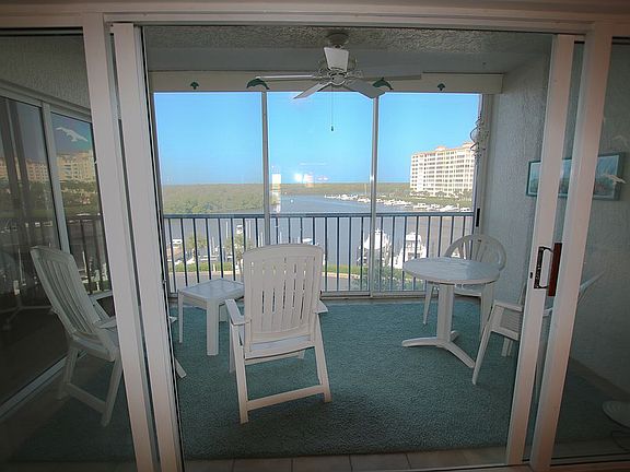 Gorgeous panoramic views of Wiggins Pass! What more could you ask for... this 2 bedroom/2 bathroom WATERFRONT condo is a perfect place to call home! Enjoy watching the sun go down on the gulf from your beautiful inclosed porch, take a walk on the dock and catch a glimpse of dolphins playing, or even take your boat for a cruise down the gulf. This condo is perfect for a buyer who wants something move in ready but also can't wait to put their own touch on it! This condo is equipped with electronic hurricane shutters, beautiful granite countertops, plush carpeting in the bedrooms and living room, sliding glass doors leading out to the covered balcony in the master bedroom, a huge walk in closet as well as a giant bathtub perfect for relaxing after a long day. This unit also includes a private storage room located downstairs next to its reserved parking spot. Marina Bay amenities include a community pool, tennis courts, pickle ball, and boat slips for rent. Check out our virtual tour!