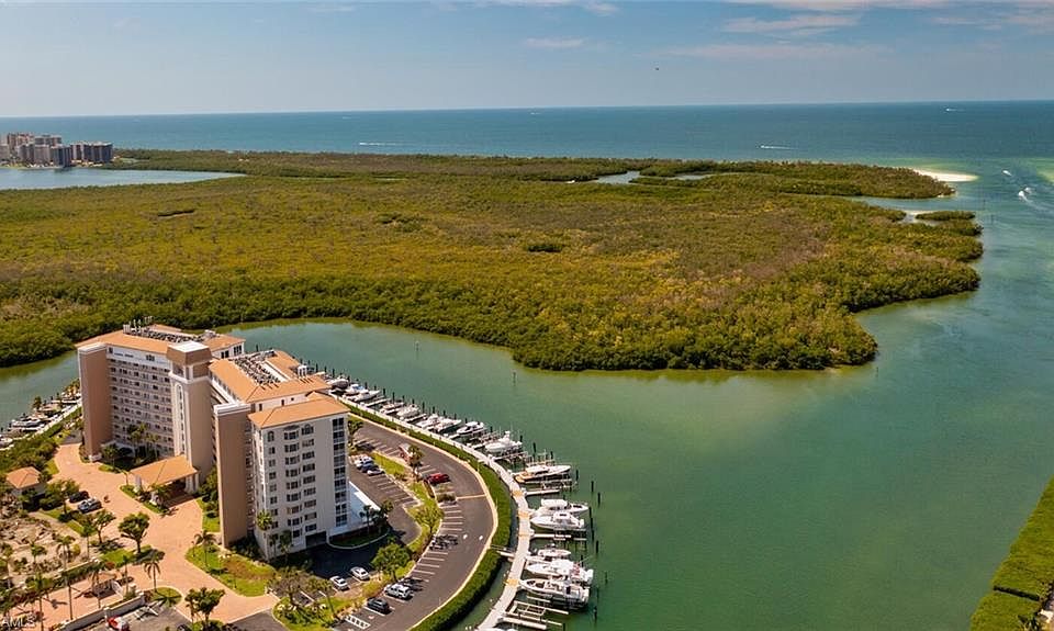 C9352 - Motivated Seller would like you to enjoy gorgeous sunsets and amenity-rich waterfront living. This is your chance to own a charming turnkey, quality furnished 2 BR 2BA, maintenance-free home w/ spectacular western views over the Gulf. Excellent setting for a glass of wine or evening cocktail while watching wildlife in the mangroves. Updated, wood and tile floors, kitchen w/ granite counters, low breakfast bar & newer Kitchen Aid SS appliances. Bosch D/W. Enjoy coffee in the sunny kitchen or on the shaded rear lanai. AC & W/H replaced in 2018, Roof is 4 years. Glassed-in lanai w/ sliders, crown moldings & plantation shutters add to the fit and finishes. Split BR plan, both 'en suite makes this very comfortable for entertaining. Marina Bay Club is gated & sits on the water. It offers a community room, pool & spa, tennis/pickel ball court. Boat slips can be leased or purchased, based on availability at the Island Marina next door. Access Gulf via Wiggins Pass, no bridges. Minutes from shopping, dining, beaches. Secure complex, on-site manager. 1 covered parking sp & 1 secure storage unit close by. Don't miss an opportunity to own a wonderful "lock & leave", Gulf view condo.