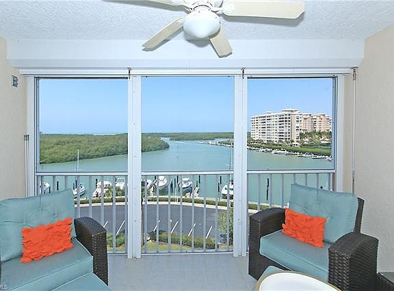 THE BEST VIEWS OF WIGGINS PASS & THE GULF OF MEXICO IN THE BUILDING! This wonderfully updated, light and bright, immaculate condo not only boasts great views straight down the pass to the gulf, but also, plantation shutters, tile on the diagonal throughout the entire condo, newly tiled showers with seamless glass doors and raised counters. Master bath also has a jetted tub/ dual sinks. Stainless appliances, white cabinetry, newer fans, lighting fixtures, new washer/dryer, newer a/c & water heater. AND OH..THE VIEW... watch the boats/ kayaks go down the pass, dolphins playing in the bay, tropical birds flying over the natural preserves, and of course-BEAUTIFUL SUNSETS! Marina Bay Club is an upscale gated community with new lobby and elevators, and low HOA fees ($485/Q)! Offering fantastic views, deep water docks available to lease/purchase with no bridges to the gulf, kayak, canoe, board, and bike storage, on-site manager, large bayside pool, extra storage, tennis/pickle ball courts, and a short bike ride to Vanderbilt Beach! Located in North Naples close to fine dining/shopping. *ROAD WORK ON VANDERBILT DR. IS NOW COMPLETE!!!