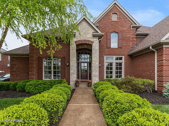 Be part of a wonderful community and purchase your next home in this beautiful Longwood neighborhood. This custom-built Robert L. Eberenz, Jr. home is situated on a quiet street across from the award winning North Oldham Schools Campus. The expansive private backyard is a beautiful a sanctuary to escape, play and relax! The interior of the home boasts an amazing open floor plan with finished hard wood floors throughout the entire first floor. Walk into the great room with soaring two story high ceilings. Amazing 5 piece crown modeling and custom built in shelves along with two fire places one in the great room and one in the hearth room off of the kitchen. The kitchen area is the heart of the house which is open to the great room and perfect for entertaining family and guests! The first floor also has a beautiful dining room area as you walk in the foyer to your right and to your left enter through French doors to your home office with built in book shelves. Make your way to the large primary suite with primary bathroom and massive walk-in closet all located on the first floor. As you head to the second floor you will see all four bedrooms and two full bathrooms with all new carpet and paint. Three of the four bedrooms have walk in closets and built in book shelves. As you head down to the walkout basement, you will find a custom remolded basement with a wonderful bar area with a mix of wood, concrete, brick and granite. Perfect for hanging out or throwing a get together! The walkout floor is done in a stained concrete which makes it stylish and resilient. There is also a cozy media room for watching sports or movies. As you walk through the basement area, it goes out to a full patio which overlooks the wooded backyard. There is an excellent work out area divided by stylish authentic barn doors and additional cabinetry for storage. Finally, an additional large bedroom with closet and full bathroom is also located in this massive walk-out level. The home also has an irrigation and security system throughout. Be part of this wonderful community and make this gorgeous home yours today!