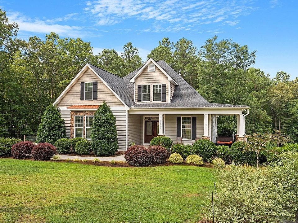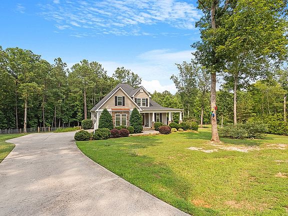 Showings begin Saturday morning 7/29. This gorgeous transitional is situated on five beautiful acres and hosts a first-floor master plus a second bedroom on the main level. The second floor has a third bedroom, a finished bonus room, unfinished storage, a landing at the top of the stairs, and a full bathroom. The bright open kitchen is home to granite countertops, hardwood floors, a kitchen island, and a ceramic farm sink. The family room stands tall with vaulted ceilings and a cozy gas-log fireplace. The master bath has a walk-in shower, a ceramic tile floor, and a huge walk-in closet. The covenants allow two horses on this amazing five-acre property. The home is built high on the lot and is well above the flood plain.