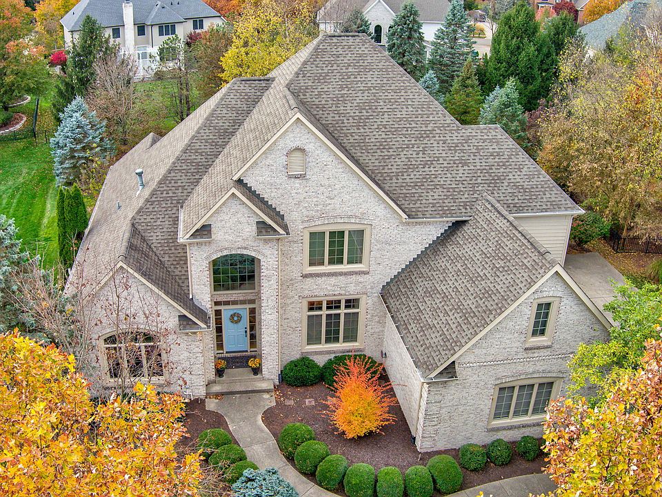 OPEN SUNDAY 12-2! Welcome Home to this Elegant 5 Bedroom 4 full bath Stunner in the picturesque golf course neighborhood- Brooks Landing at Prairie View! This home offers a luxurious living experience with a primary bedroom on the main floor and spaces flexible enough for all ages! You will be captivated by the grandeur of the two-story great room, flooded with natural light that accentuates its spaciousness! In the heart of the home, you will find a well-appointed kitchen with Viking/Dacor appliances and a large island for both casual meals and grand entertaining that can extend to the formal dining room! It adjoins a breakfast nook made cozy by the charming hearth room with fireplace! Work from Home? The main floor office has a built-in bookcase and secure closet. The primary bedroom suite on the main floor provides convenience and privacy, complete with walk-in shower! Upstairs you will find 3 generously sized bedrooms, 2 sharing a Jack-and-Jill and the third with a private bath. Lower Level provides full daylight and an extra level of functionality w/ a full bath, bedroom, wet bar, movie area & cozy gas fireplace! Garage has abundant storage and an epoxy floor. The exterior provides a spacious area for play and/or entertaining with a low-maintenance paver patio! Neighborhood amenities are second to none-clubhouse, pool, playground, basketball, tennis, walking trails, and fishing! Enjoy Golf Course views dining at Sahm's at Prairie View just a short walk away. Embrace all the benefits of Carmel, with award-winning schools, and surrounding areas while returning home to your exquisite retreat!