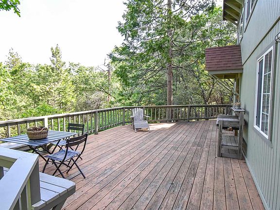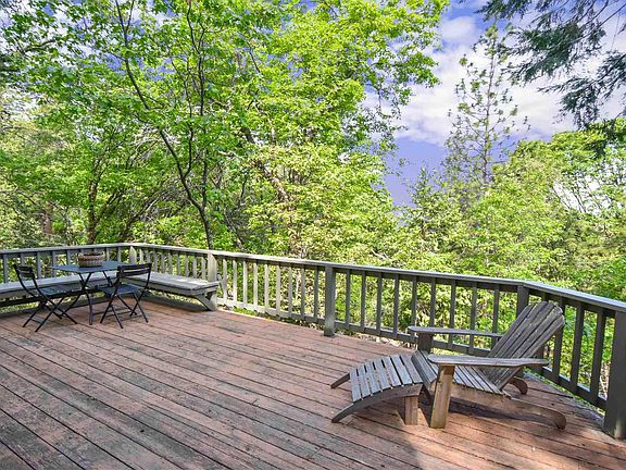 Are you looking for a sweet mountain retreat? Are you looking for a furnished home ready for you to move in? Well here it is. This private mountain charmer is filled with light. Opening the front door you will be so surprised by all the extras: Wooden sashed windows, skylights and special extra touches. Deck covers two sides of the home and you can sit and drink your coffee in privacy. Open kitchen with beatiful homemade wooden island. Steps to a sleeping loft big enough for two twin beds, desk and comfy reading chair. Bedroom is large and open with two level windows. Large closet for all your clothes, bedding and extras too. Bathroom is accessed from bedroom and living room. Indoor laundry room makes life easy. Free standing woodstove heats the whole house. There is a large hot tub on the covered deck. Night time, hot tub and a glass of wine can be in your future. Back yard is fenced for your four legged friends. Large shed with electricity in the back. Only I few items will not stay otherwise house is furnished.