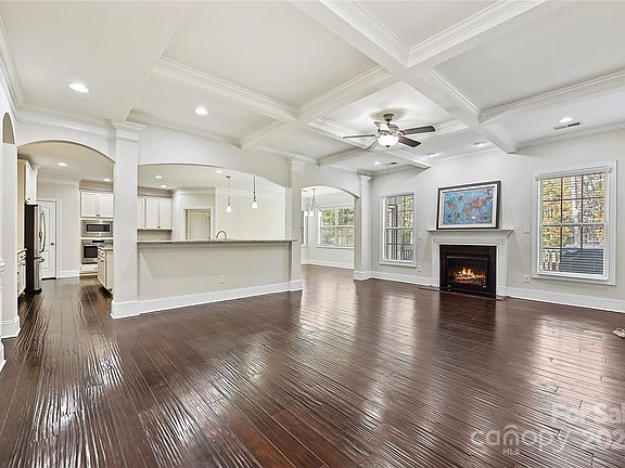 Step inside 13107 Pumpkin Way Drive and discover contemporary elegance! Wide plank hardwood flooring, soaring coffered ceilings, and decorative archways enhance this open concept layout—ideal for entertaining! At the heart of the home is a beautiful Kitchen featuring granite countertops and off-white cabinetry, complemented by a Butler’s Pantry leading to a spacious formal dining room.The main-level Owner’s Suite offers a serene retreat with a private view of the lush backyard, while the luxurious bath boasts an oversized step-in shower, a deep soaking tub, and contemporary ceramic tile. A private home office is also conveniently located on the main level. Upstairs, find four bedrooms, Two with ensuite baths and the perfect Bonus Room. Enjoy fantastic Summerwood amenities, including a clubhouse, pool, playground, and scenic walking trails. Conveniently located near Downtown Mint Hill and just a 25-minute commute to Uptown Charlotte, this exceptional property awaits!