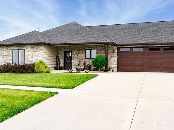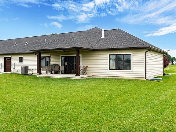 Single Family Attached Home in Prairie Ace Estates adjacent to Effingham Country Club. The Garage is the only common wall to the other Duplex offering privacy! Get your own golf cart as this home features a golf cart Door to the backyard. The over-sized 2-1/2 car Garage features an 18' wide door for two over-sized vehicles! The Garage and Front Porch were poured with no steps to get inside the home! The inviting Entry greets you with a vaulted Ceiling, hardwood Flooring, and open concept Living Spaces. The dream Kitchen features granite Counters, a large center Island, and an abundance of custom Cabinets. The Dining Room features a wet bar! The Living Room features a gas Fireplace, Cabinets, Shelving, and a triple Sliding Door to an 18' covered Patio. Even the Laundry has custom Cabinets with a planning desk, folding counter, and sink. The Basement features an egress window for a future Bedroom #3, and plumbed for a future Bathroom. Plan your move to Prairie Ace Estates!