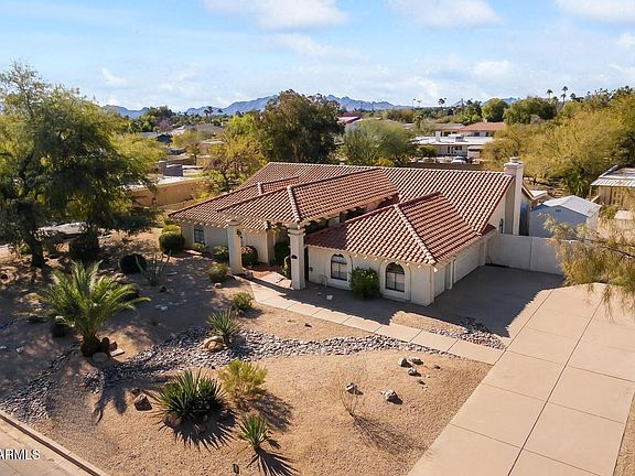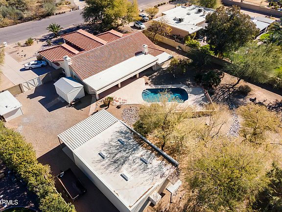 Gorgeous Estate in 85260 with a 6-CAR DETACHED GARAGE and 3-CAR GARAGE attached. The PRIVATE LOT stretches 35,415 SF (almost an ACRE). This 4 Bedroom 3 Bath home has a great floorplan with 3,184 sf . VAULTED CEILINGS with GORGOUS WOODEN BEAMS in the FORMAL DINING ROOM and SITTING ROOM. A SPACIOUS COVERED PATIO stretches the entire back of the home & newly Pebble-tech DIVING Pool! The patio has several entertaining areas with lots of space expand the home or entertain guests. POOL just RE-PEBBLED/TILED. Roof underlayment recently updated,.