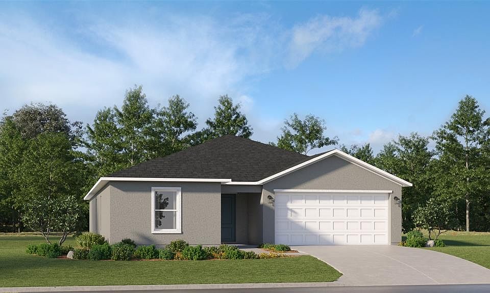 Under Construction. This brand-new single-story home features an open layout with 4 bedrooms and 2 bathrooms designed for comfort and functionality. The kitchen includes quartz countertops, stainless steel appliances, and a center island that opens to the dining and gathering areas, creating a perfect space for entertaining. Sliding glass doors lead to a covered lanai for outdoor enjoyment. The owner’s suite offers a private retreat with a spacious bedroom, dual sinks, and a large closet. Additional bedrooms provide flexibility for family, guests, or a home office. An attached garage adds convenience and storage.