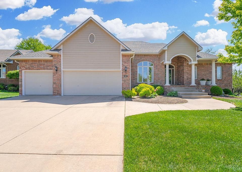 Welcome home! This one owner home in the desirable Rocky Creek subdivision has a great floor plan and is located on a beautiful corner lot. As a former model home, this home has a lot of extras – finished walls in the garage, wired surround sound, multiple family room spaces on the main floor, a covered deck, and hardwood floors in the kitchen. The main floor offers a split bedroom plan with a primary bedroom suite, two additional bedrooms, and a second full bathroom. The master bathroom has a separate tub, shower, two sinks, and a walk-in closet. Also, on the main floor you will find a separate laundry room, a formal dining room, a spacious living area, a kitchen with a walk-in pantry, an eat-in space off the kitchen, and a great hearth room. The new luxury vinyl flooring on the main floor is brand new. Great light throughout the main floor! You will love the views of the mature trees and plants from many areas of the home and on the covered deck. Head to the basement and find a huge family room and rec space. Multiple spaces to spread out and enjoy! The wet bar is also located in the basement. There is also a fourth bedroom, third full bathroom, and a separate office space in the basement. Storage galore! Multiple storage room areas are wonderful for seasonal décor and extra household items. This home has been lovingly cared for. Other features include a roof less than a year old, new furnace, AC less than 2 years old, no specials (other than the $8.38 landfill fee), Andover Schools/Wichita taxes, and just a minute away from the renovated neighborhood pool and playground area. You can’t miss this home and this location! Rocky Creek is highly desired for its convenient location and well-designed neighborhood.