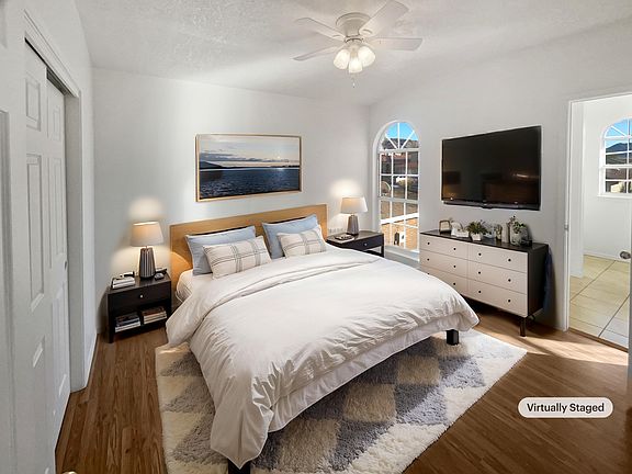 Welcome to your dream home, boasting a fresh interior paint in a soothing neutral color scheme. The living room is cozy and inviting with a beautiful fireplace. The kitchen is a chef's delight with all stainless steel appliances. Relax in the primary bedroom featuring a walk-in closet and an en-suite bathroom with double sinks. Outdoors, enjoy the covered patio and deck, perfect for entertaining. The backyard is fenced in for added privacy. Recent updates include partial flooring replacement. This property is a must-see!