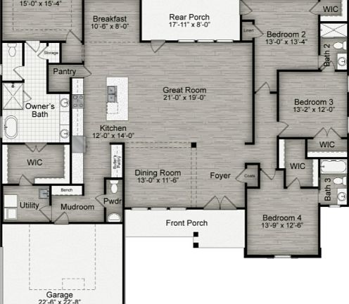 The Dogwood is the perfect home design with no wasted space. The Dogwood features a formal dining room, breakfast area and large great room. A split floor plan design with multiple single-floor bedrooms and walk-in closets. The stunning kitchen offers lots of pantry space. Featuring a large Owner's Suite with sitting area and open bath with an expansive walk-in closet, this home design is perfect for growing families and those who love to entertain. Note: The price reflects the price of the home itself and does not include the property. You are responsible for providing the property on which these plans will be built.