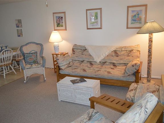 Enjoy seashore living at it's finest in this beautiful street side quad. This home features a large deck overlooking the flowers in bloom. Here you can soak up the sun, enjoy the peace & quiet or spend time with your family & friends cooking out on the BBQ. There's a nice sized screened in porch with room for some rocking chairs. Both bedrooms are spacious enough for any furniture configuration. The eat in kitchen is open to the living room which makes entertaining easy. This well maintained home is tastefully decorated and furnished, ready for its new owners. Property is coming furnished, less personal items. A new roof will be installed in the next couple weeks.