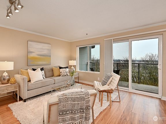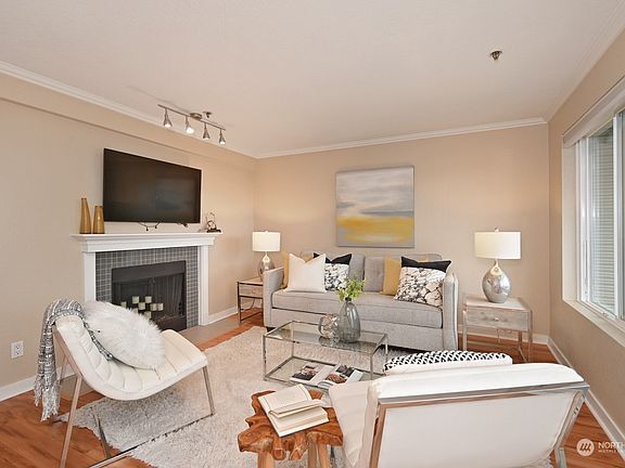 Fabulous view condo! Enjoy taking in the western views of sunsets, mountains, the sound and the city. Updated condo features hardwoods, an open living room with wood burning fireplace, dining area, slider to large deck, kitchen with beautiful cabinets, granite counters and stainless steel appliances. Spacious primary bedroom with additional vanity and bathroom access. Full size in unit washer and dryer. Pet friendly. No rental cap. Elevator, outdoor pool and clubhouse. 2 garage parking spots. Plenty of off-street parking for visitors. Live in the heart of Seattle with easy commute options. Surrounded by parks, minutes to downtown, International District, stadiums, light rail station, restaurants and shopping.