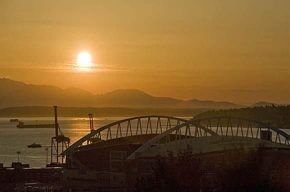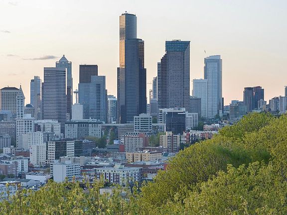 Top floor corner view condo. 230 degree view from Mt Rainier to Cascade Mountains including Puget Sound, Olympic Mts, both sports stadiums, waterfront Wheel, downtown Space needle. Large quiet private. Lots of light. Wrap around deck. 2 parking stalls in secure garage
