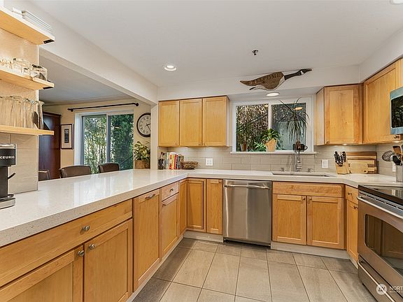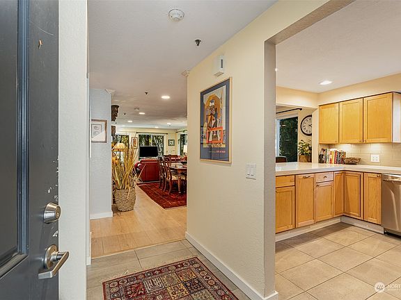 Upon entering this brilliantly lit and spacious 2 bed 1.75 bath elevated ground floor unit, you'll notice splendid refinements and attention to quality and detail. The updated kitchen boasts quartz countertops, custom wood cabinets, and stainless steel appliances. The dining and living area are vast, as are the views of beautiful trees, city lights and a scene that changes with the seasons. The en suit is updated, and the other rooms blend seamlessly with the remainder of the unit. Pets are welcome in this secure environment, and you'll have your own underground parking space with elevator access. No special assessments, or rental cap. Easy access to transit, sodo, downtown, dining and Nightlife!