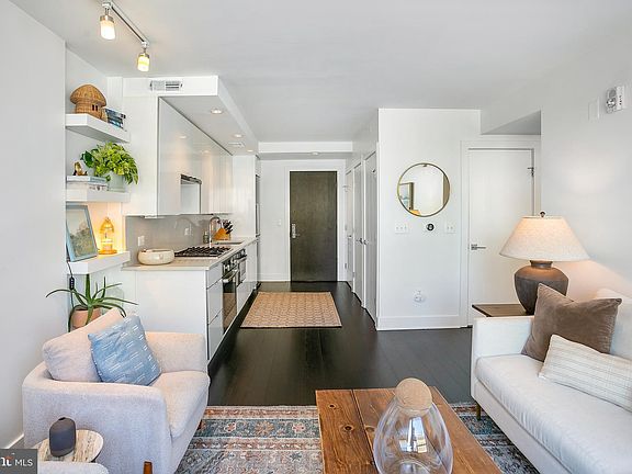 PRICE IMPROVEMENT! Welcome to this pristine and sun-drenched 1 bedroom condo located in the heart of Logan Circle. Perfectly appointed, the unit features dark hardwood floors, sleek stainless steel appliances with gas cooking, and an open floor plan. The spacious bedroom features a custom outfitted walk-in closet and access to a full bathroom with modern details like a half-glass wall on the shower/bath and floating vanity. Picture windows flood the unit with natural light and enjoy lovely skyline views. A convenient washer and dryer in-unit completes this perfect package. Unit 503 conveys with a designated assigned parking space and large storage unit. Logan13 offers a beautifully maintained rooftop deck with plenty of seating and outdoor grills, and is pet friendly. Only a few short blocks from Whole Foods, top restaurants, parks, and coffee shops. The proximity to highly desirable 14th Street and Logan Circle couldn't be more ideal.