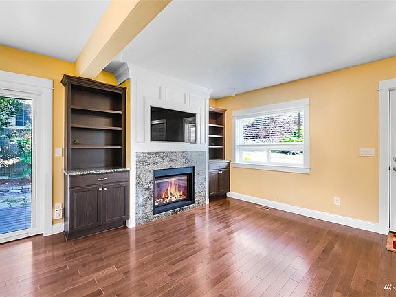Great home + great location! Completely remodeled with quality finishes throughout. Cozy living area with gas fireplace/built in bookshelves and dining area are open to beautiful kitchen with granite counters and stainless appliances. Main level master has full bath or enjoy the spacious bedroom upstairs that has Mt. Baker view and private deck. Nice trim detail, skylights & tile baths. Large double car garage, lots of parking and don’t miss the lovely private patio! Super location close to town, schools and pool.