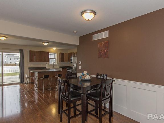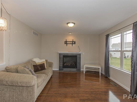 Wonderful newer home! Open floorplan features fireplaced family rm open to kitchen with SS appliances, farmhouse sink & island breakfast bar. Beautiful piano finish cherry laminate flooring throughout main floor. Convenient main floor laundry rm off half bath. Fully applianced plus home warranty included! Versatile main floor den. Vaulted master suite includes 9 x 5 WIC and private bathrm with heated tile floor, dual sinks and dual head tiled shower with side jets. Full basement offers 4th bedroom, rough-in for bathroom and potential rec room. High efficiency furnace & on demand water heater.