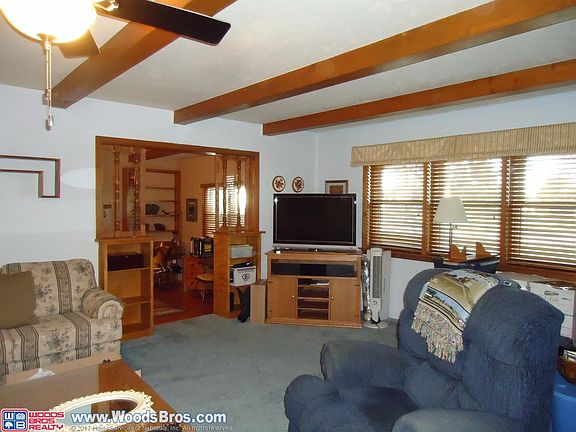 Great home with character! Large formal living room, first floor family room with a brick fireplace that has been converted to a gas log. Formal dining room with a free-standing gas log fireplace, large windows over looking the back yard. 2 bedrooms on main level and a bath with a large step in shower. Beamed ceilings in living, dining and family room. Brick archway between kitchen & dining. Kitchen appliances are built in. Basement features a large non-conforming bedroom and a 3/4 bath with laundry. Family room with bar area. Back yard has a large deck-partially covered. A portion of the yard is fenced. Large side yard with a 24 x 30 shed with concrete floor & 2 overhead doors. Some new windows, color-lok siding. Large corner lot. Must see!!