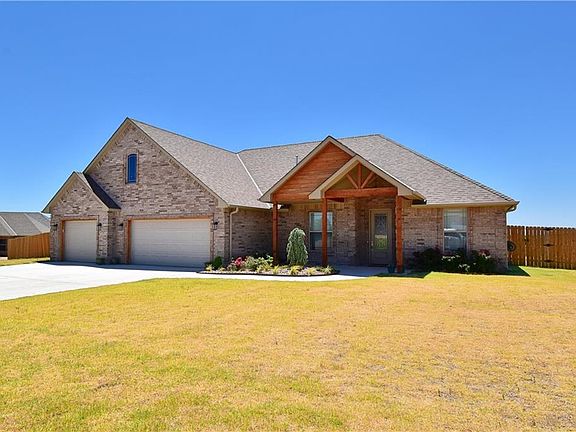 Welcome to 1311 Dahlia Lane, a stunning and immaculate home built in 2020 by a single owner, located in the desirable Hummingbird Estates in Cache, OK. This property sits on just over one acre of beautifully landscaped land, providing ample outdoor space for relaxation, entertaining, or even gardening. The interior of this home boasts three spacious bedrooms, each with ample closet space and natural light. In addition, there is a versatile office space that can easily be converted into a fourth bedroom if needed. The open floor plan seamlessly connects the living room, dining area, and kitchen, creating a perfect setting for entertaining guests or spending quality time with family. The kitchen is fully equipped with stainless steel appliances, custom cabinetry, and a large center island, perfect for preparing meals and hosting gatherings. The primary bedroom suite features a luxurious en-suite bathroom with a large soaking tub, separate shower, and double vanity sinks.
