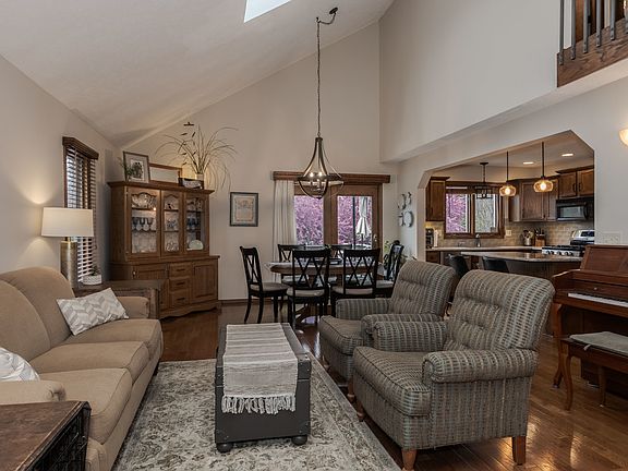 Amazing property with a convenient location to everything! If you need extra bedrooms or office space, then this is it!! Main floor primary bedroom with updated bath, heated floors, and walk-in shower and main floor laundry too!!! 3 bedrooms and 1 bath on 2nd floor, Check out the barn door and custom 'dutch' door off catwalk on 2nd level. 2 more bedrooms in basement with egress windows. Updated kitchen boasts quartz countertops, an appointed island with pendant lighting and planning desk. Kitchen opens to dining and great room with a ventless fireplace with remote control. Beautiful hardwood floor throughout main floor except primary bedroom. The private backyard is an oasis with professional landscaped lighting for both trees and deck! Exterior cedar siding was painted in 2019. Most of the interior painted in 2022. HVAC replaced in 2010 and AC compressor in 2022. Water Heater and sump pump replaced in 2021, Roof in 2009, Deck 2019, Radon system in place and was retested in 2018. Floored attic above garage. This home shows like a model! Don't miss out!