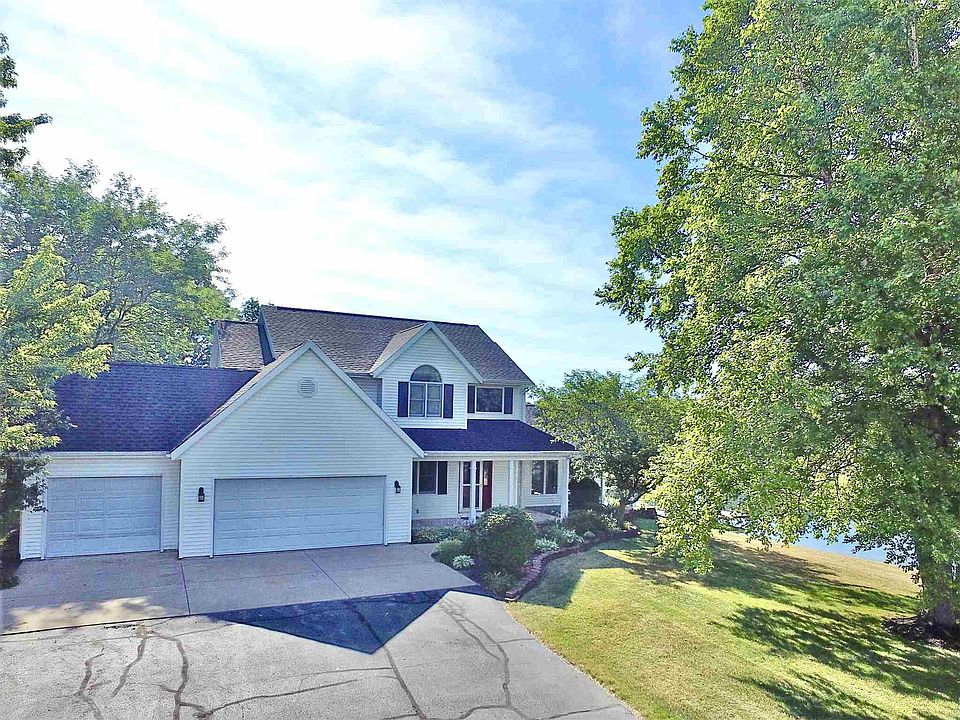 Welcome home to Shafer Shores! Excellent neighborhood and location near schools, shopping and parks. Located just outside city limits by US 31, this 2 story home sits on a beautiful large lot (1.06 acres) with a shared pond, pier and a sandy beach/swimming area. Tastefully decorated 4 BR 2.5 bath home w/3 car garage (approx. 2966 finished sq. ft) and new roof in Feb 2020! Large sunroom w/cathedral ceiling, gas log fireplace, custom porcelain tiled flooring, and wall of windows that face the water. Updated kitchen has painted cabinetry, island, SS appliances, wood look laminate flooring and pantry. Main floor laundry/mud room has custom built-ins and includes washer/dryer. Master BR has 2 WIC's, double sinks, jetted tub and shower stall. Family room in basement has bar w/frig, surround sound system, and finished storage area. Covered front porch, and open deck in backyard. Wouldn't it be nice to come home to this house and fishing pond?