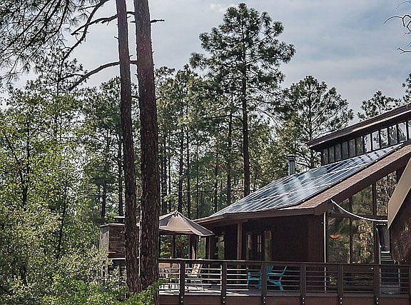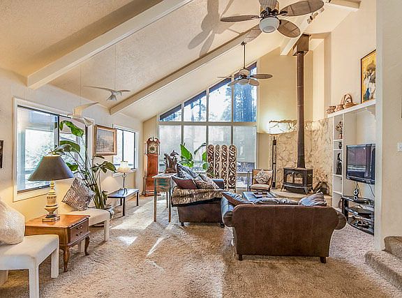 This 2595 sqft home boasts open and bright living spaces that show off the glory of nature that surrounds it. Mature Ponderosa Pines can be admired through every window in this spacious recently remodeled home. The interior of the main house contains 4 bedrooms (master on main floor), 3.5 baths and a large finished walk out basement that is ideal for a game room. The neutral color pallet complements both the outdoor scenery and the furnishings (which can be available on a separate bill of sale.) Outside you will enjoy the wrap around deck that houses an outdoor fireplace and spa. An extra living space with a full kitchen, full bath and two extra bedrooms is located above the garage. Owned solar panels, fully fenced/gated yard, RV parking, high end appliances, private well, and much more.