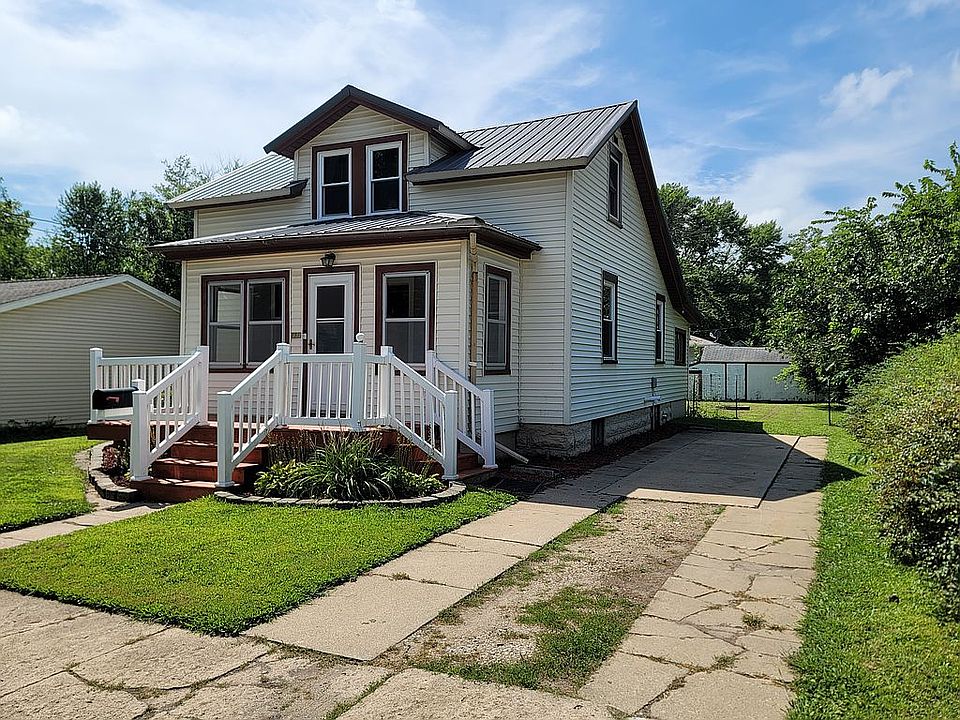 This Two Bedroom, One Bathroom, Story And A Half Home Has Had Many Improvements Completed In Past Years. 2016 - Front Deck, An On Demand Water Heater. 2014 - Steel Roof, Furnace, Central Air Conditioning And Some Flooring. 2025 Replacement windows and new electrical devices. Exterior Amenities Include Vinyl Siding, Fenced Back Yard, Landscaping, A 18' X 24' heated garage (new siding, roof and insulation 2024) Shed, Concrete back Yard Patio and Fire Pit. There Is A Bedroom On Each Level, Nice Sized Living Room, Eat In Kitchen (includes all appliances) With Ample Cabinetry And A Main Level Bath. Upstairs You Will Find A Den Or Potential For 3rd Bedroom. Call Today For Your Private Showing And Opportunity To Make This Home Your Home!
